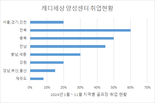 2024년 1월 ~ 11월 캐디세상양성센터 지역별 취업 현황