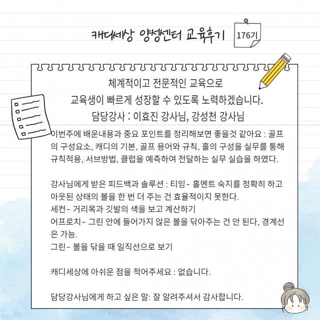 176기 교육생의 캐디교육후기 - 캐디세상 양성센터 골프캐디 전문교육과정