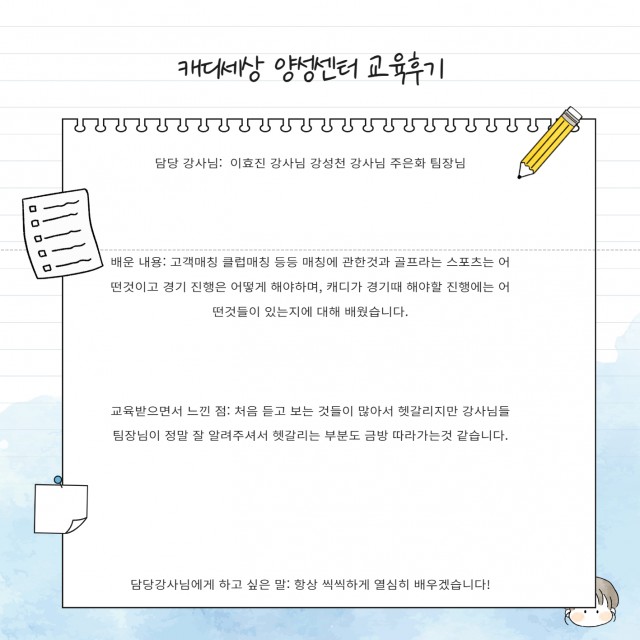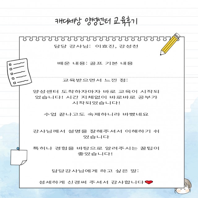 163기 교육생의 캐디교육후기 - 캐디세상 양성센터 골프캐디 전문교육과정